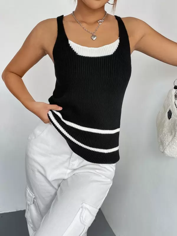 Striped Pattern Tank Knit Top