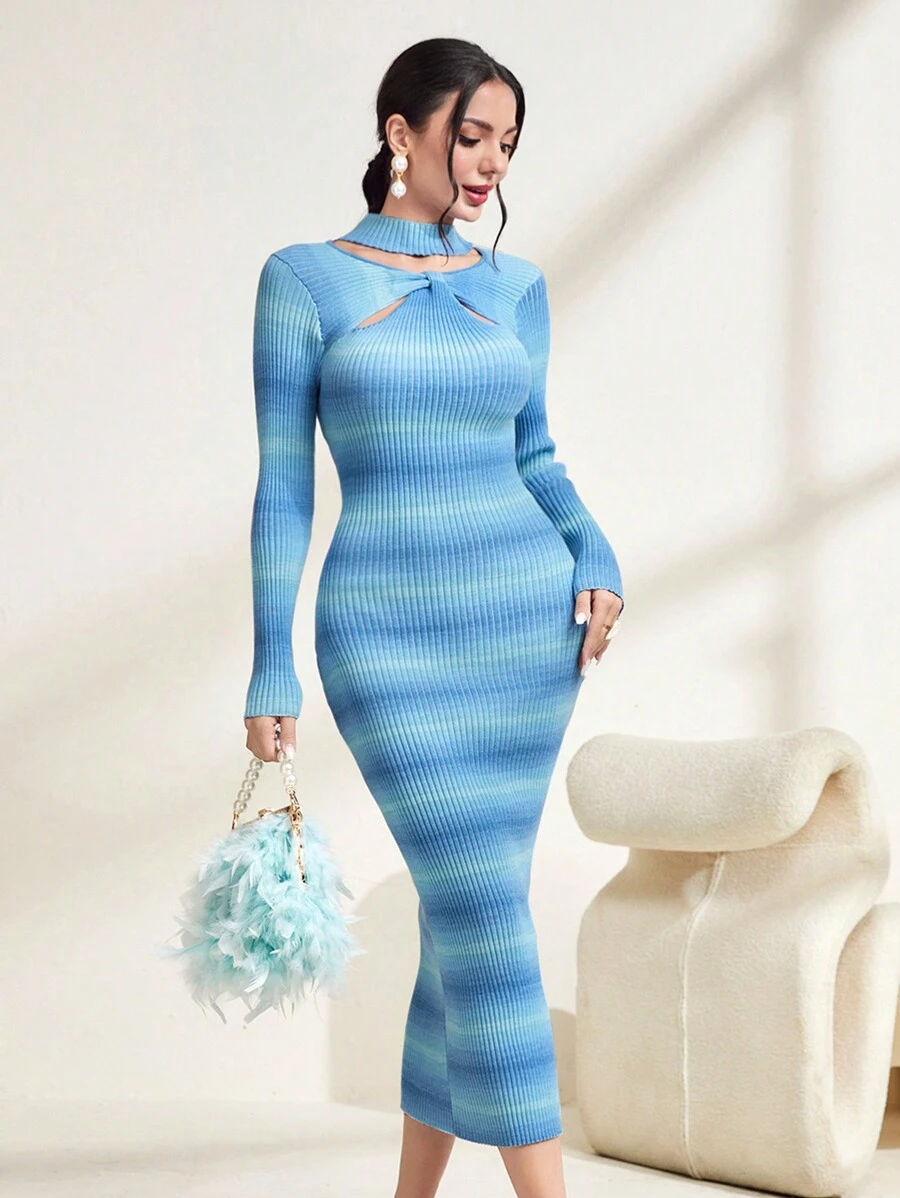 SHEIN Mulvari Striped Pattern Twist Front Bodycon Sweater Dress