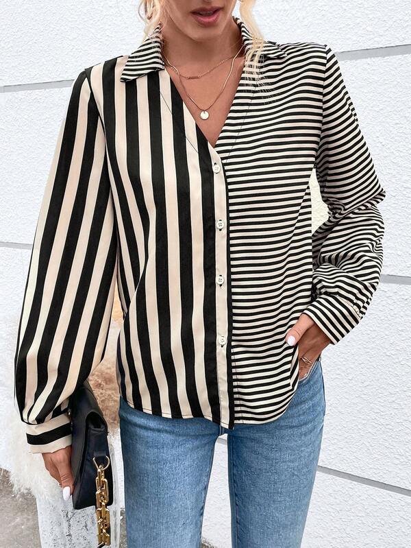 SHEIN Frenchy Striped Print Button Front Shirt
