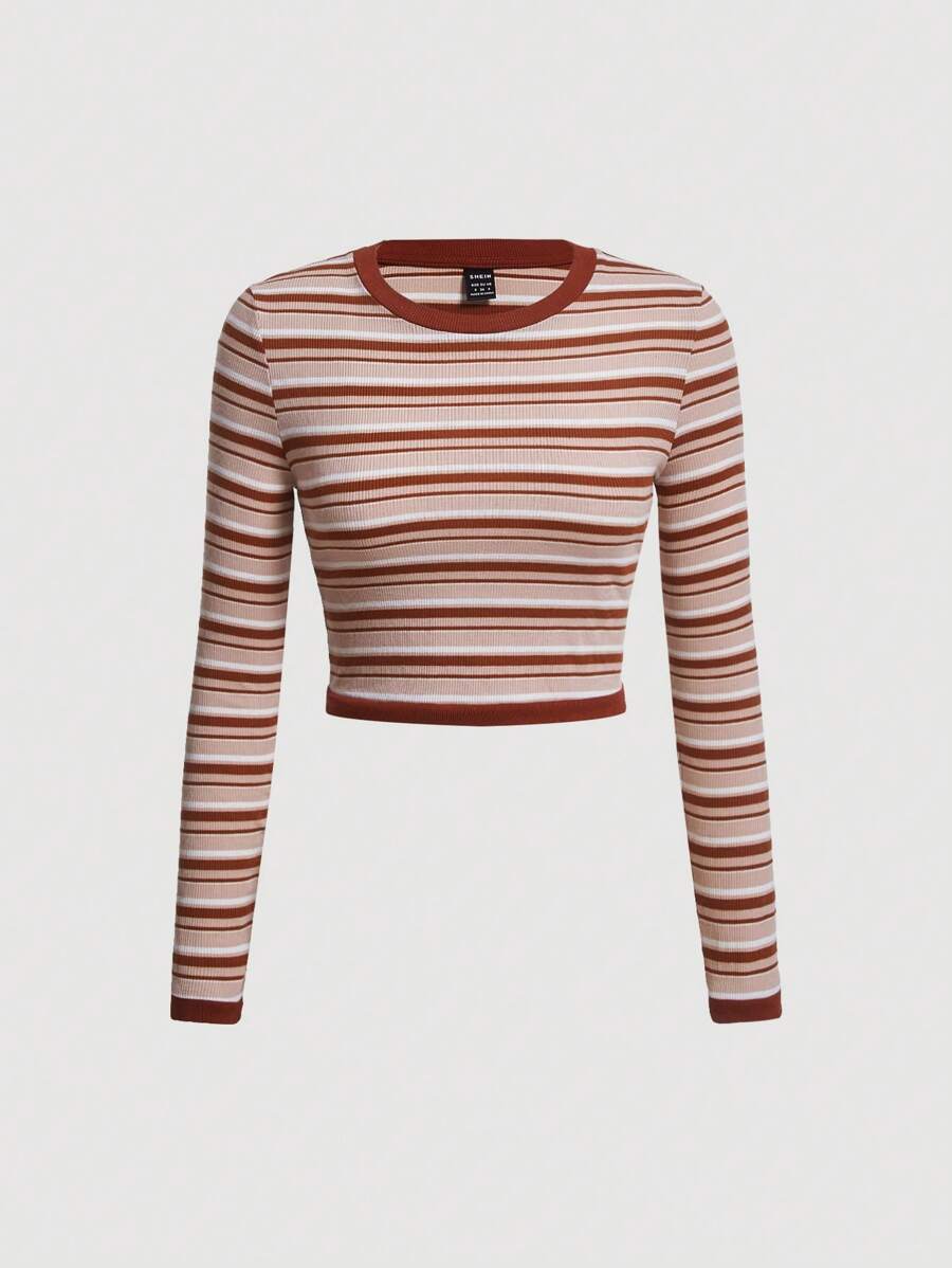 SHEIN MOD Striped Print Crop Tee