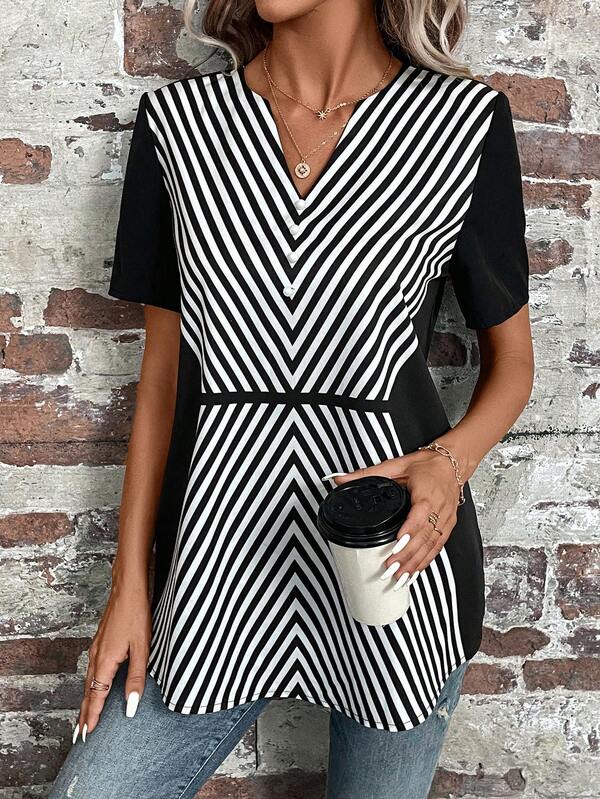 Striped Print Curved Hem Blouse