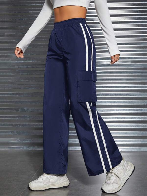 SHEIN PETITE Striped Side Design Cargo Pants