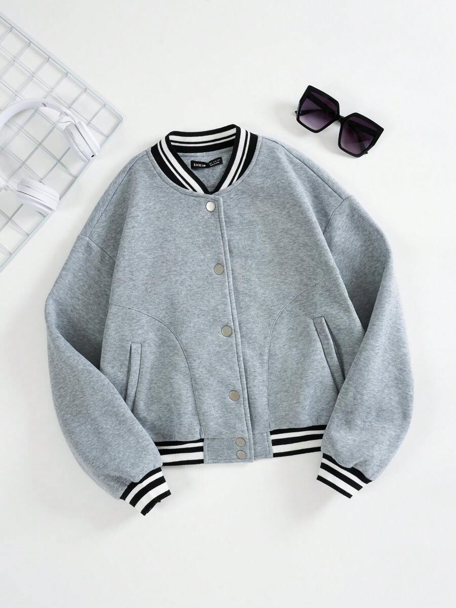 SHEIN EZwear Striped Trim Drop Shoulder Bomber Jacket