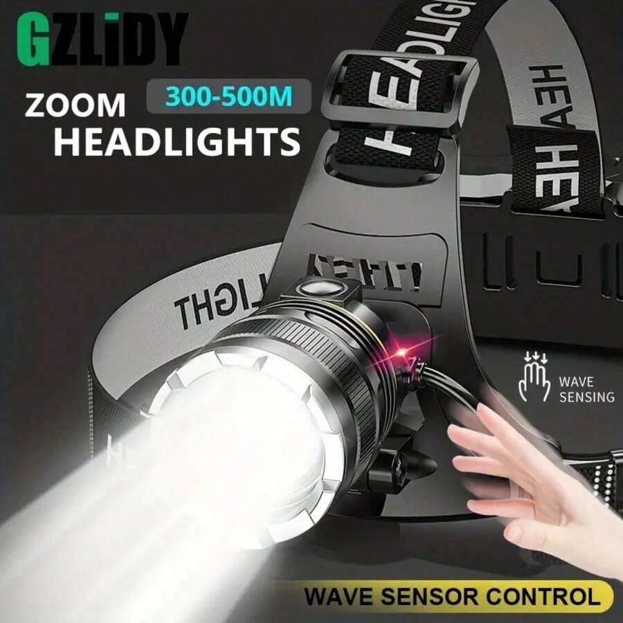 Strong Light Sensor Headlamp Charging Adjustable Zoom Aluminum Alloy Mining Light Outdoor Riding Headlamp Outdoor Camping Headlamp