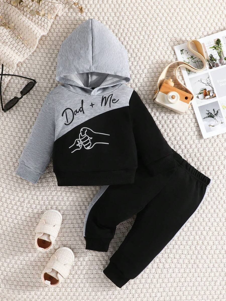 Stylish And Casual Sportswear For Baby Boys, Long Sleeve Hooded Sweatshirt And Pants Set With Letter Print And Color Block Design For Spring And Autumn