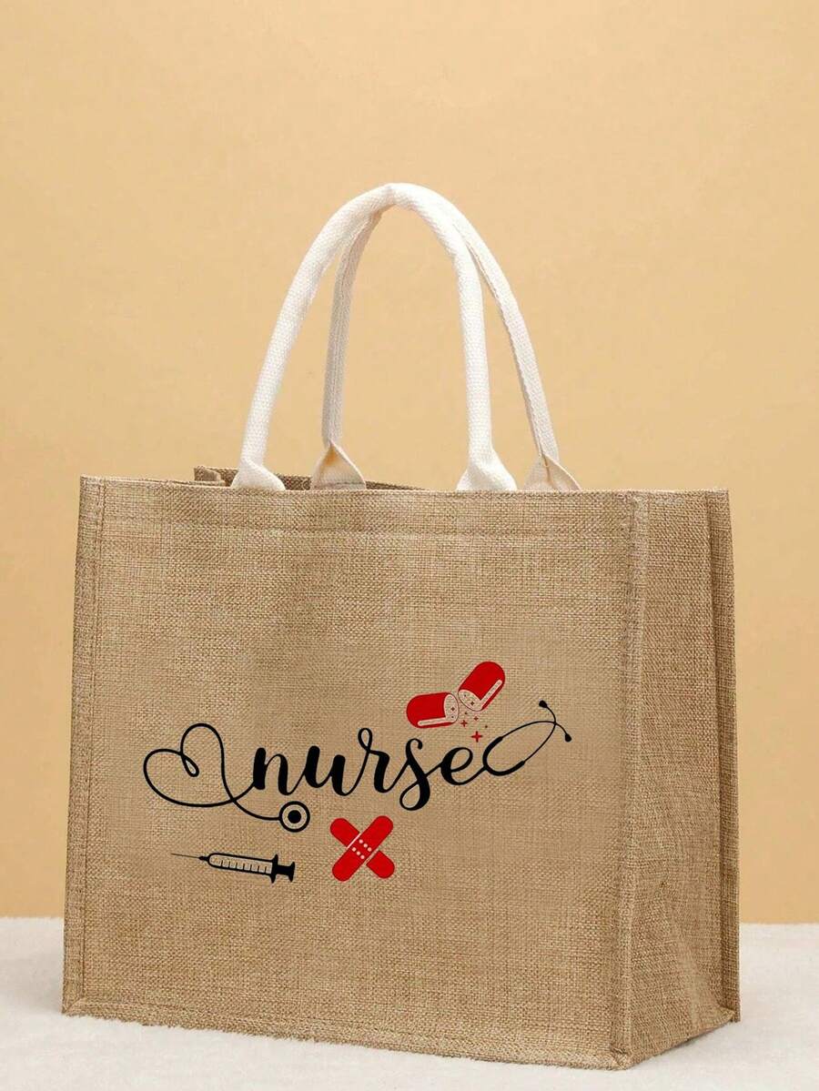Stylish Pattern Handbag, Lightweight Multifunctional Handheld Tote Bag, Women'S Portable Travel Handheld Shopping Bag Nurses Day Gift, Linen Tote Bag, Lightweight Foldable Storage Bag, Convenient Shopping Bag, Teacher Gift Tote Bag, Nurse Doctor, Teacher Thank You Storage Bag, A Gift For Friends On , A Bestie Gift For Mom, Suitable For Personal Travel, Makeup Shopping Bag, Large Storage Capacity