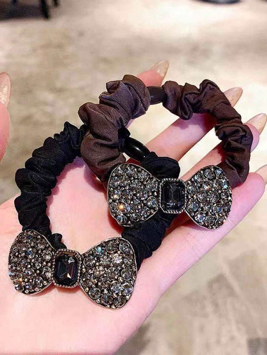 Stylish Rhinestone Hair Ties For Women And Girls - Elastic Hair Bands With Bow Design For Hair Accessories And Headwear