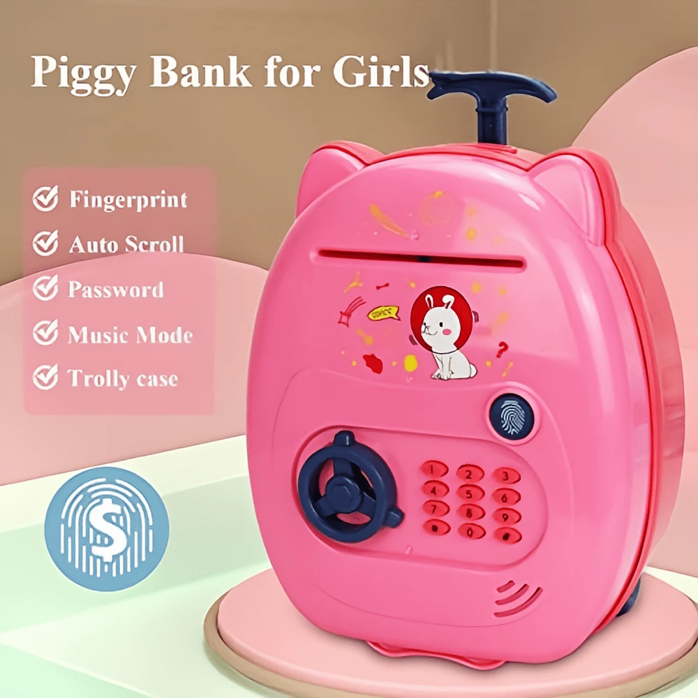 Suitcase Design Large Piggy Bank Toys, Creative Plastic Money Saving Box Anti-Theft ATM Savings Bank With Auto Grab Bills Slot, Vault On The Move, Christmas Birthday Giftable Stuff Mystery Box Electronics, Fingerprint Verification Password Lock And Different Music, 3 AA Batteries Not Included, Christmas Birthday Gifts