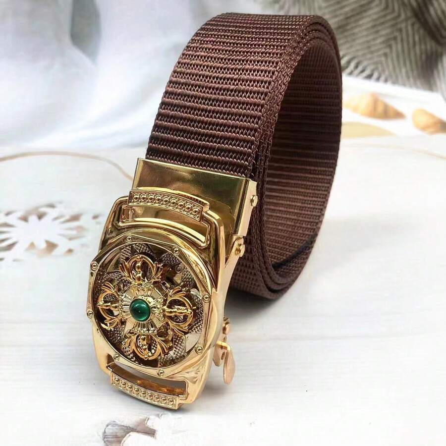 Summer Golden Rotatable Automatic Men'S Belt, Faux Nylon Belt For Men On The Street