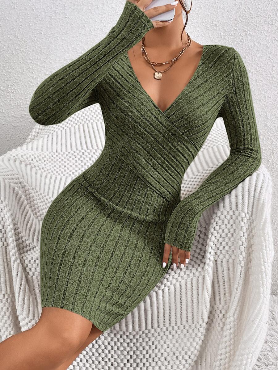 SHEIN Frenchy Surplice Neck Ribbed Knit Bodycon Dress