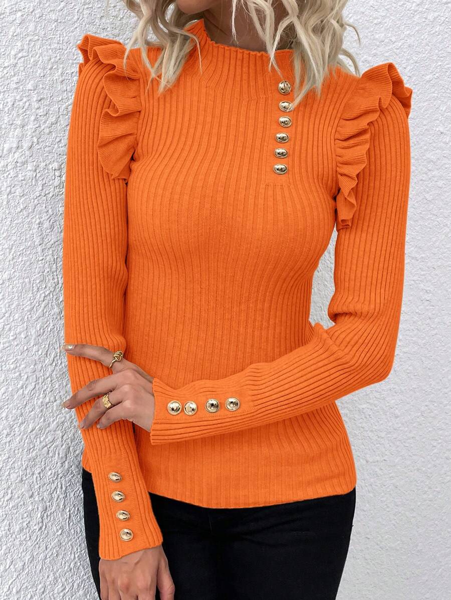 SHEIN LUNE Sweater With Ruffle Trim & Button Decoration