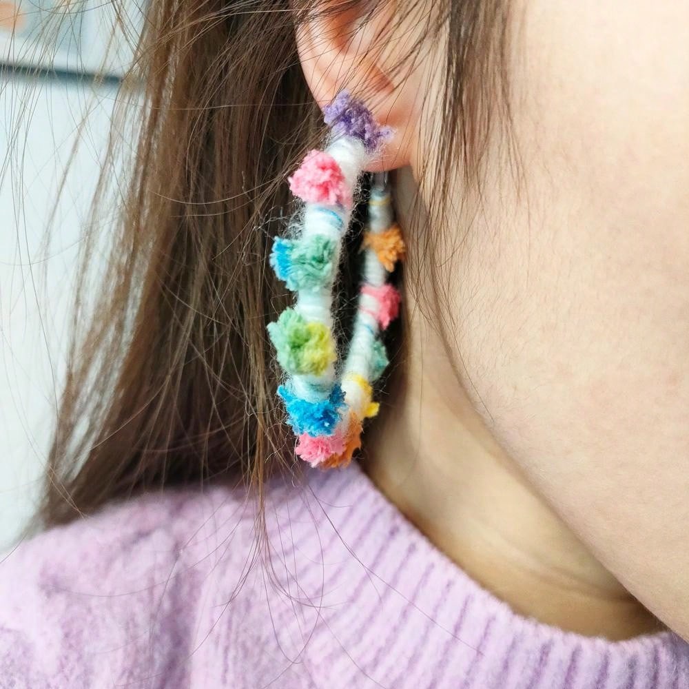 Sweet Rainbow Colored Wool Cord Wrapped Women'S Hoop Earrings 3cm/6cm, Handmade 316l Stainless Steel Ear Cuff, Best Friend Gift Accessory