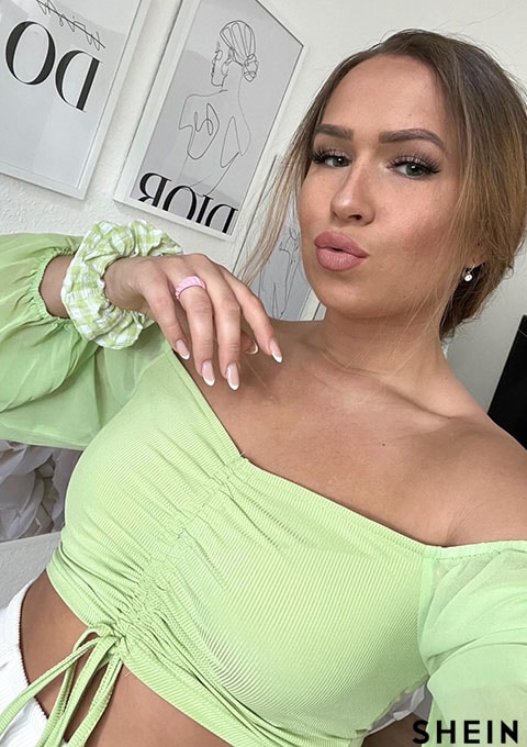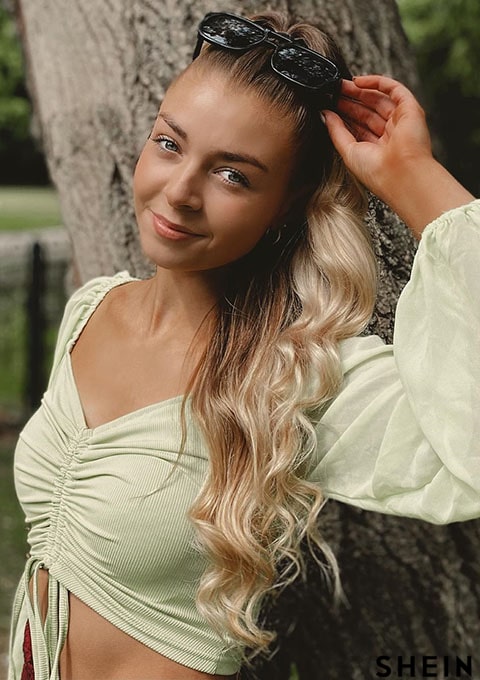 SHEIN Privé Sweetheart Neck Drawstring Lantern Sleeve Crop Top