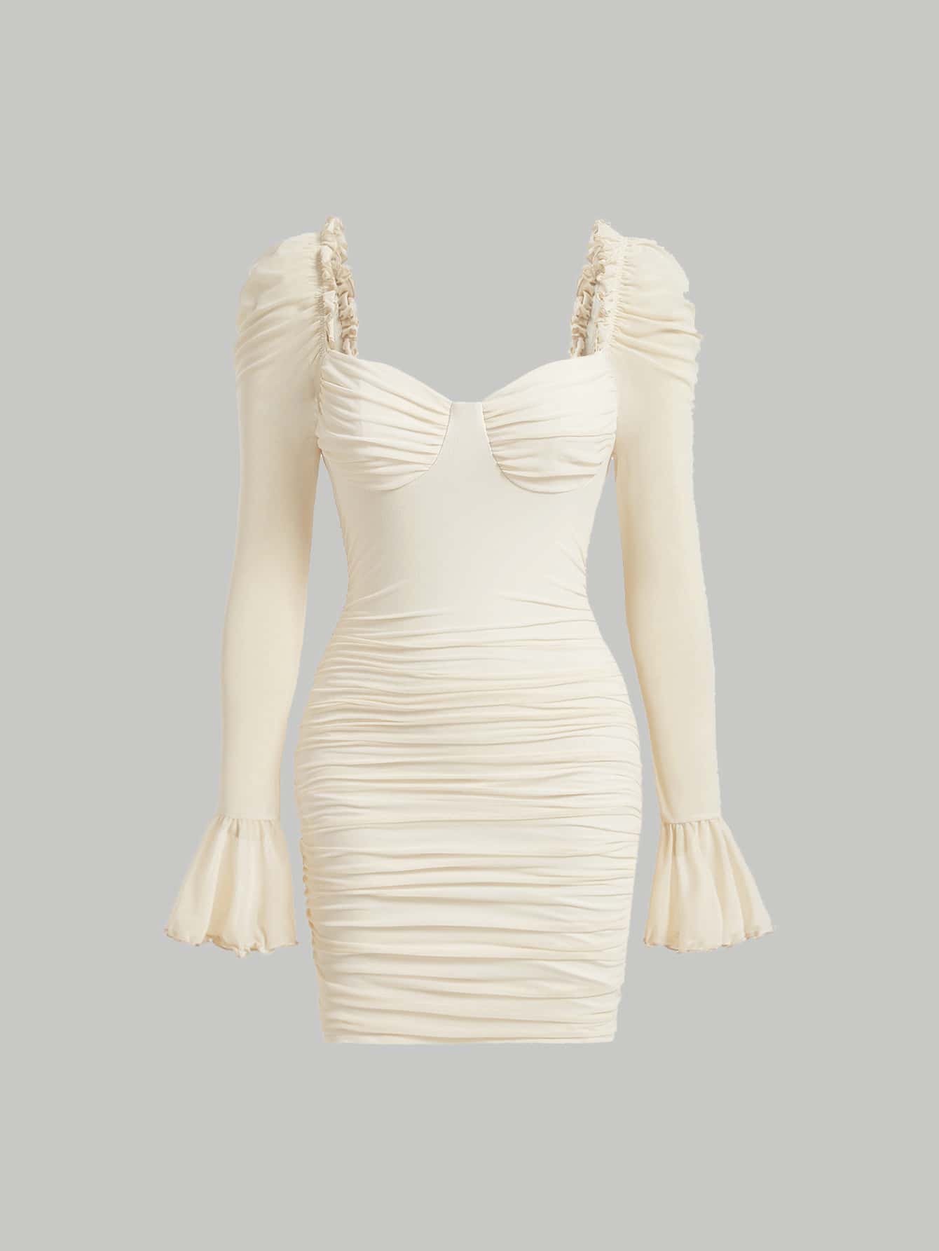 SHEIN MOD Sweetheart Neck Flounce Sleeve Ruched Bodycon Dress