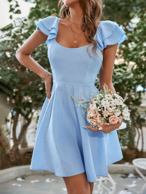 SHEIN WYWH Sweetheart Neck Tie Back Butterfly Sleeve Dress