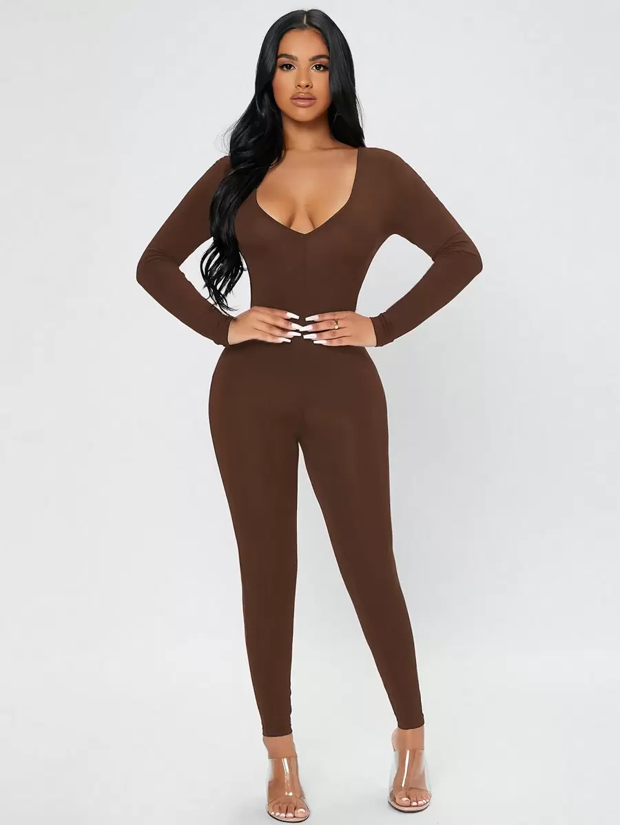 SHEIN PETITE Sweetheart Neck Unitard Jumpsuit
