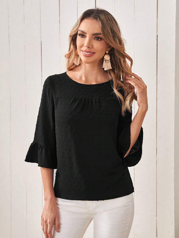 EMERY ROSE Swiss Dot Flare Sleeve Blouse