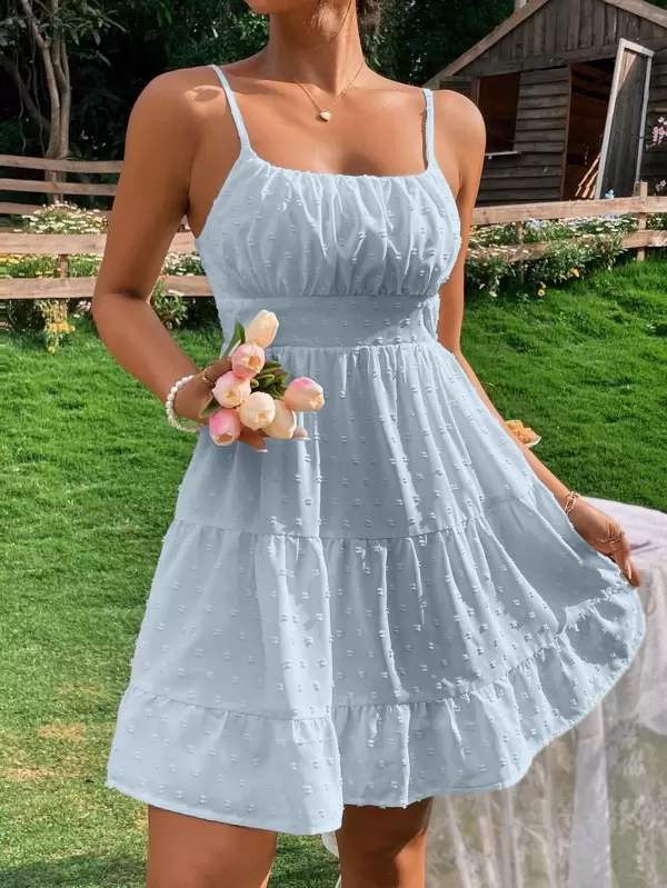 SHEIN WYWH Swiss Dot Ruffle Hem Cami Dress