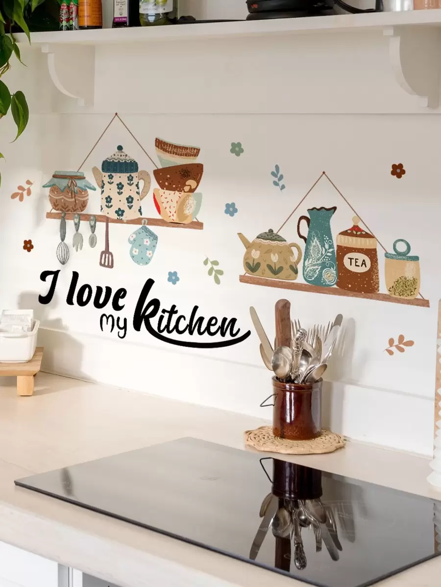 Tableware Pattern Kitchen Sticker, Wall Art Decal For Home Decor