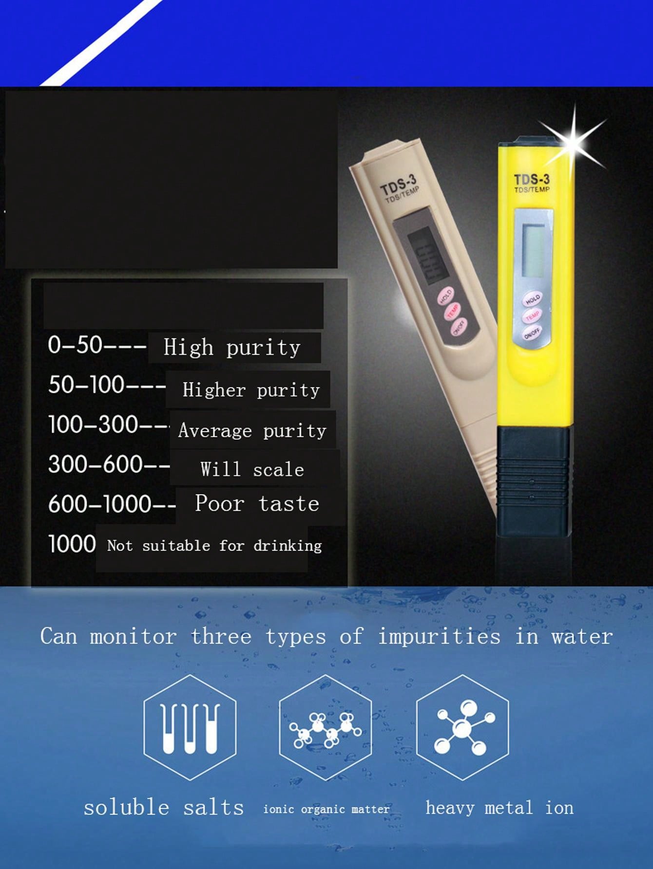 Tds-3 Water Quality Tester Pen For Direct Drinking Water, Tap Water Monitoring, Household Water Detecting Tool, 1pc Gray