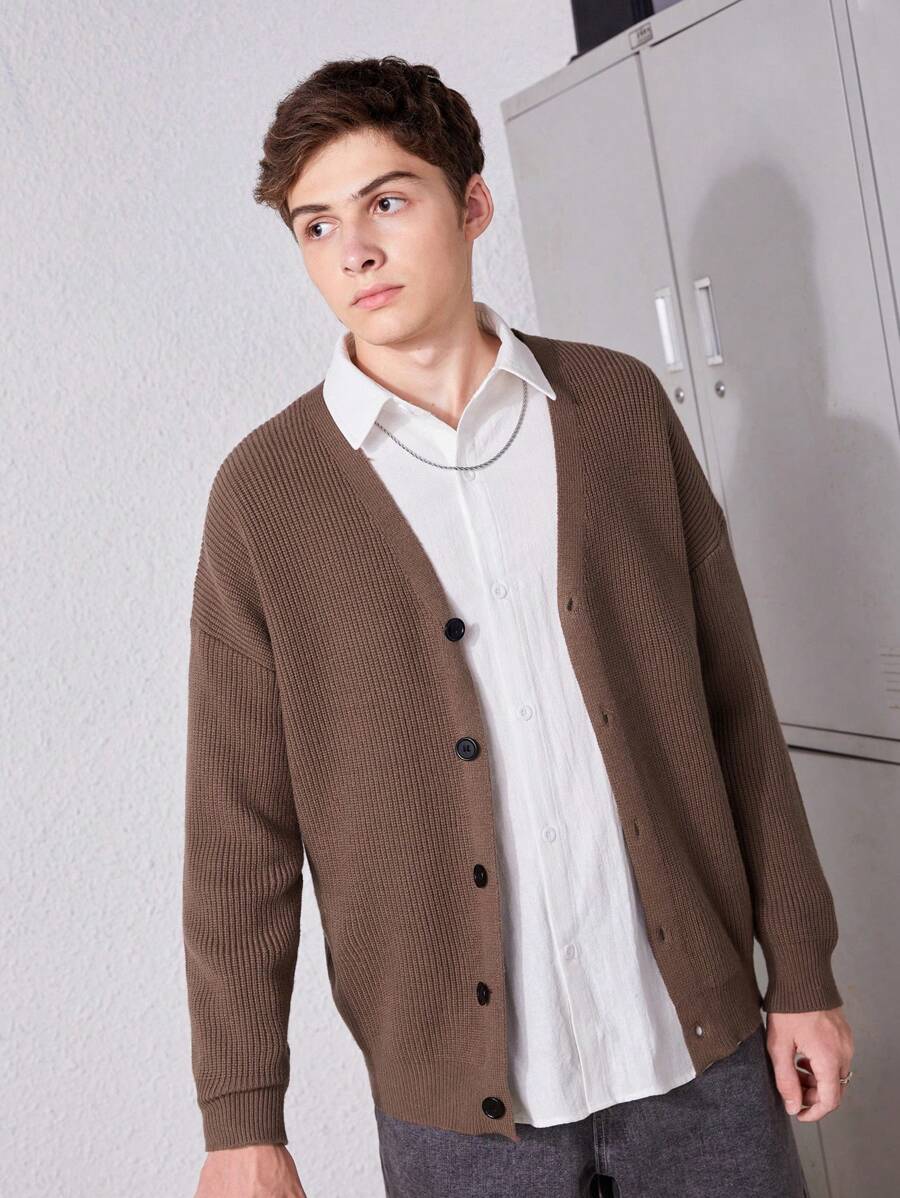 SHEIN Teen Boy Drop Shoulder Button Front Cardigan