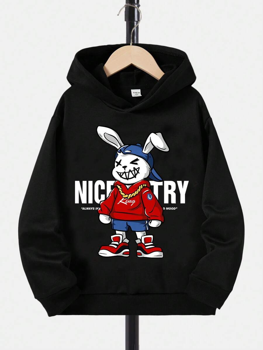 Teen Boy Rabbit & Slogan Graphic Drop Shoulder Hoodie