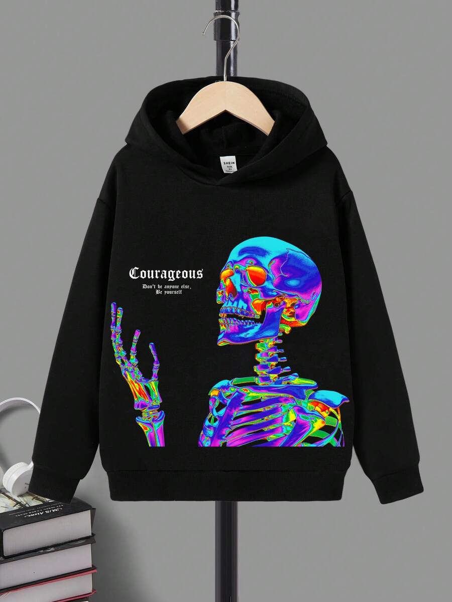 Teen Boy Skull & Slogan Graphic Hoodie
