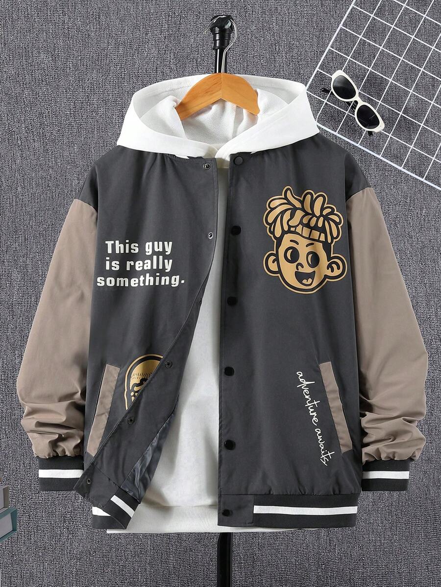 SHEIN Teen Boy Slogan Graphic Colorblock Drop Shoulder Varsity Jacket Without Hoodie