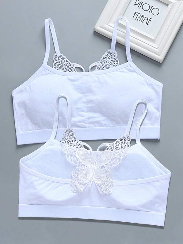 Teen Girl 2pcs Contrast Lace Cami Underwear