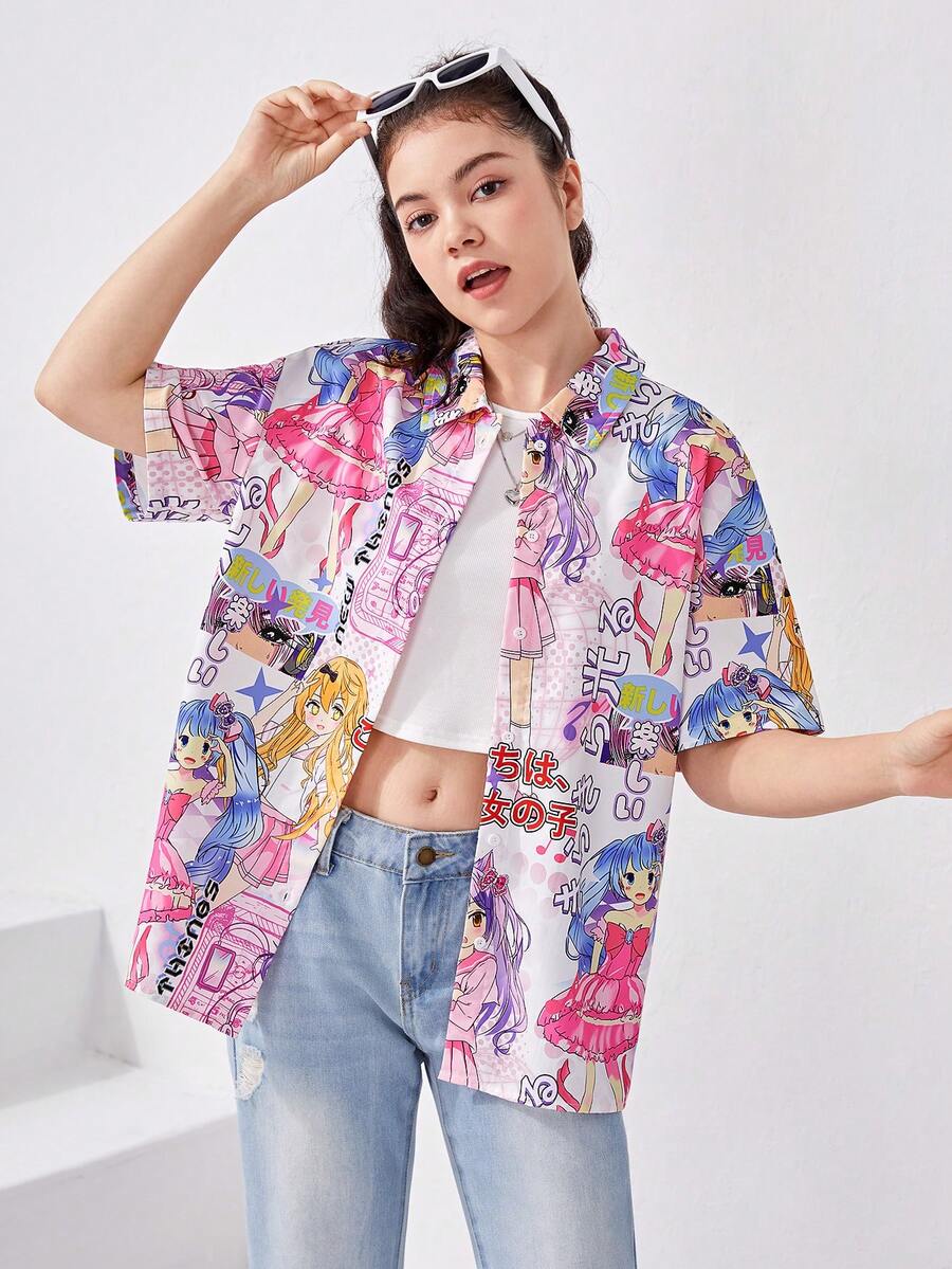 SHEIN Teen Girl Cartoon Figure Graphic Shirt