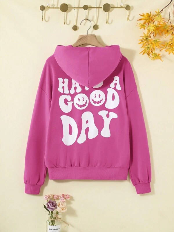 SHEIN Teen Girl Expression & Slogan Graphic Drop Shoulder Hoodie