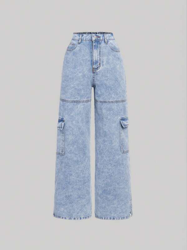 SHEIN Teen Girl Flap Pocket Side Cargo Jeans
