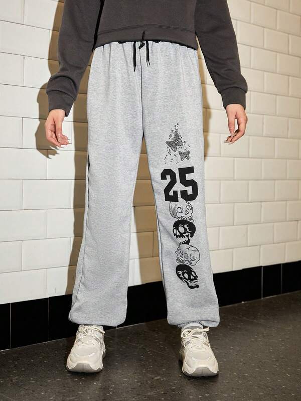 SHEIN Teen Girl Letter Graphic Drawstring Waist Sweatpants