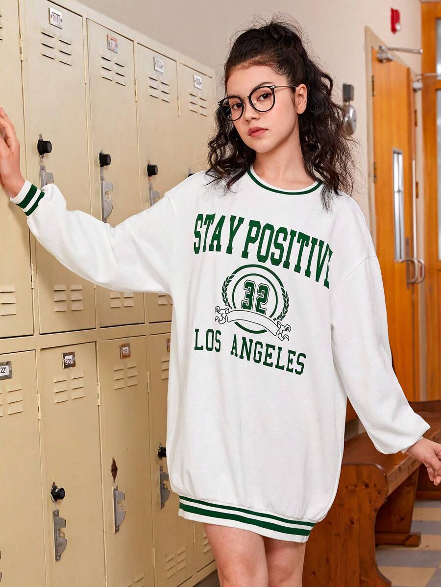 SHEIN Teen Girl Letter Graphic Striped Trim Drop Shoulder Sweatshirt Dress