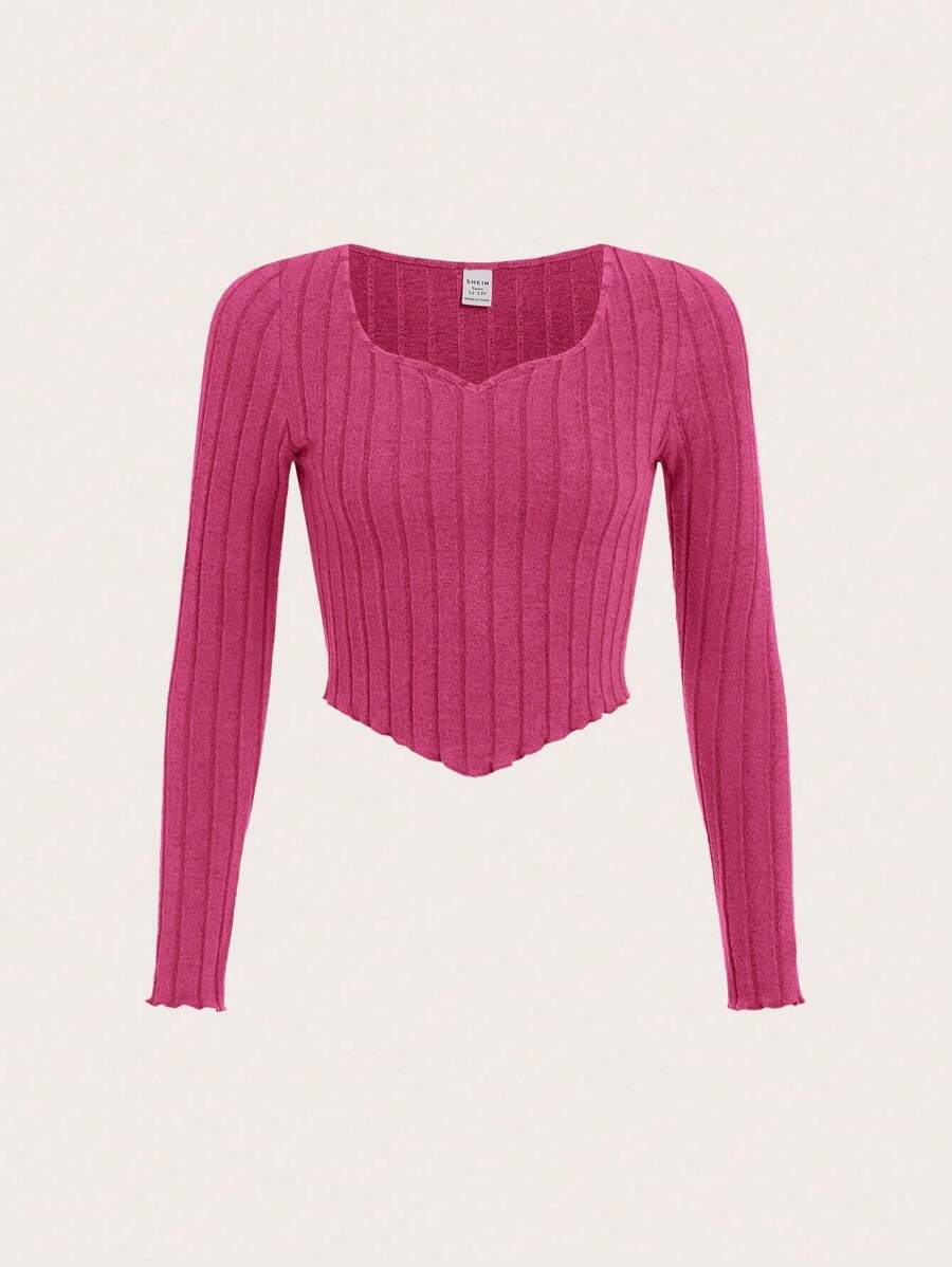 SHEIN Teen Girl Lettuce Trim Hanky Hem Crop Tee