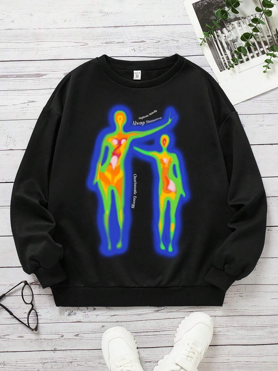 Teen Girl Reflective Figure & Letter Graphic Sweatshirt