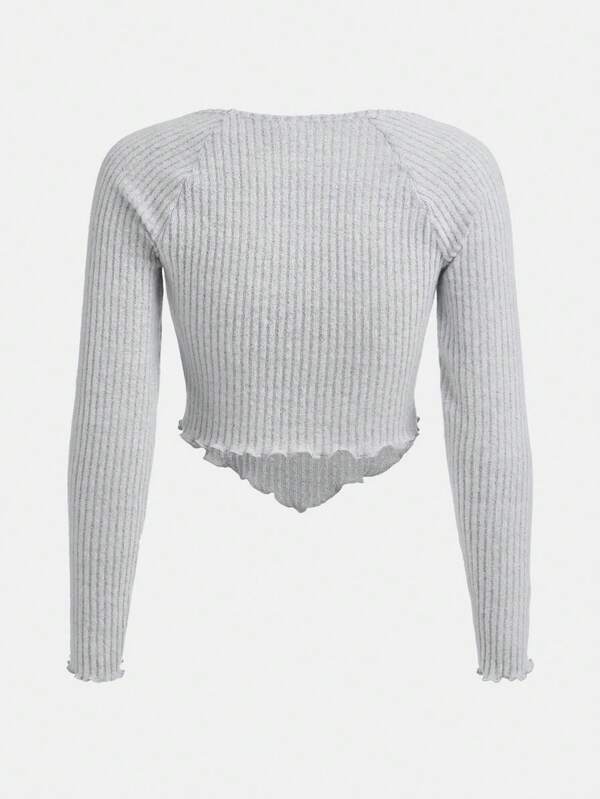 SHEIN Teen Girl Ruched Bust Lettuce Trim Raglan Sleeve Hanky Hem Tee