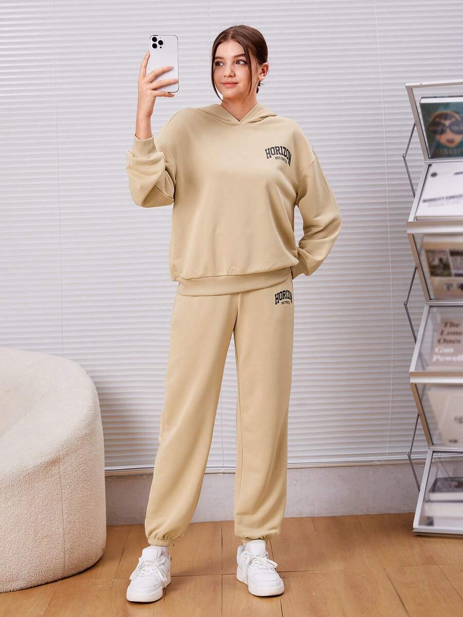 SHEIN Teen Girl Slogan Graphic Drop Shoulder Hoodie & Sweatpants