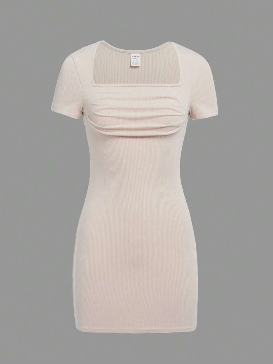 SHEIN Teen Girl Square Neck Ruched Bust Bodycon Dress