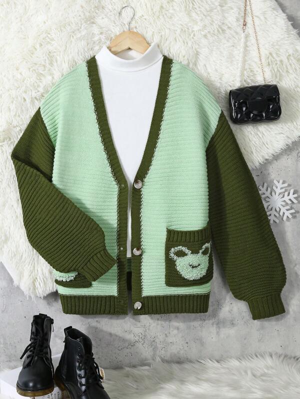 Teen Girls' Cartoon Frog Pattern Cardigan