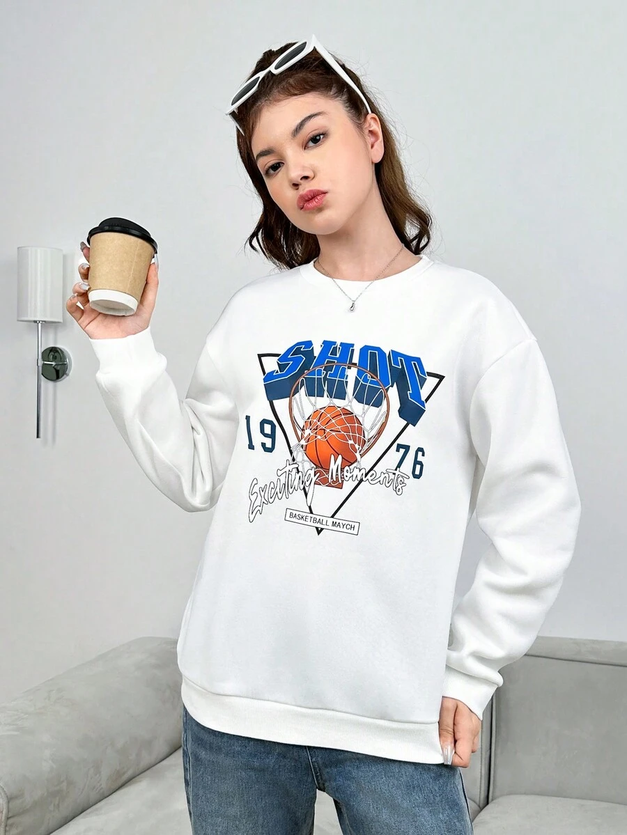 Teen Girls' Letter & Basketball Print Sporty Sweatshirt