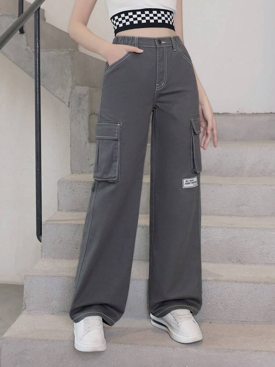 Teen Girls' New Arrival Casual & Fashionable Dark Grey Utility Straight Leg Jeans