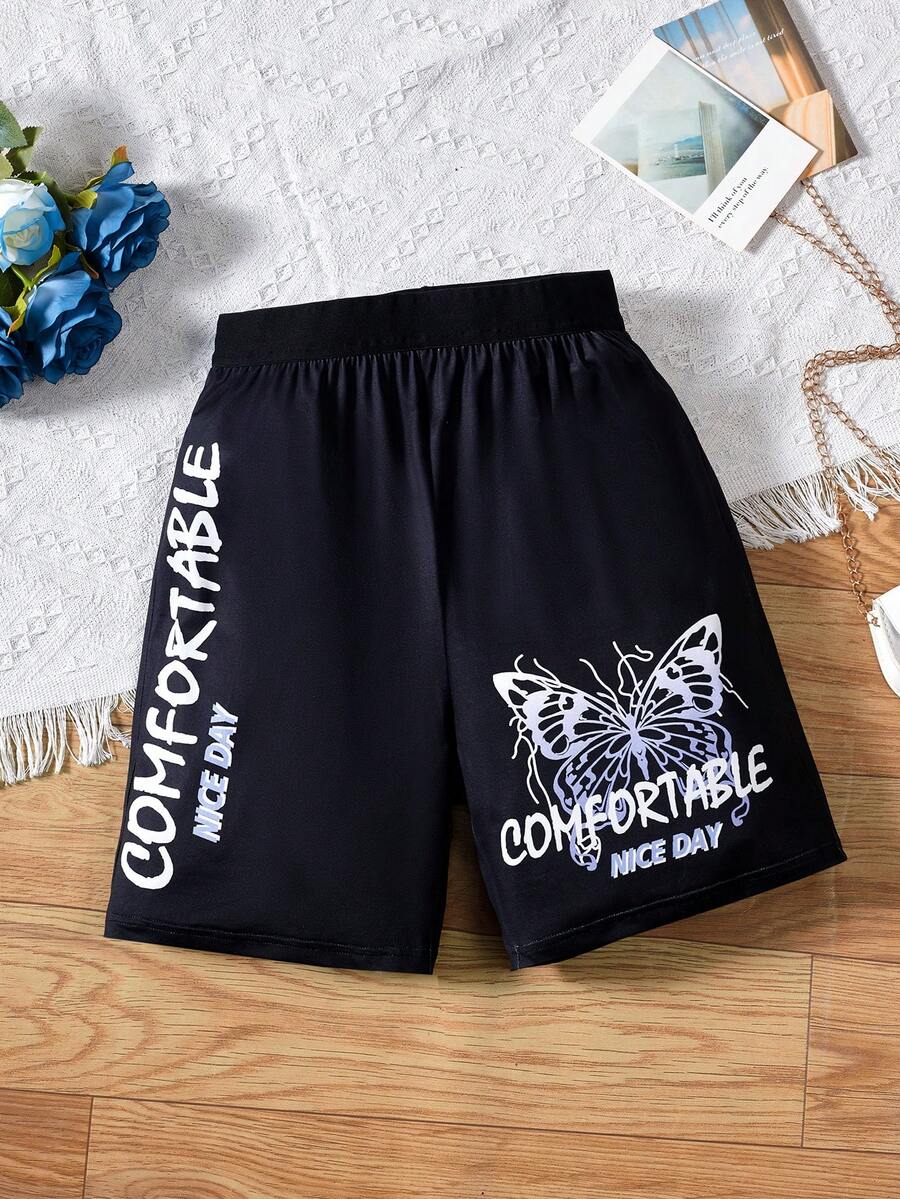 SHEIN Teen Girls Butterfly & Letter Graphic Shorts