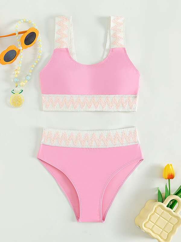 Teen Girls Chevron Tape Bikini Swimsuit