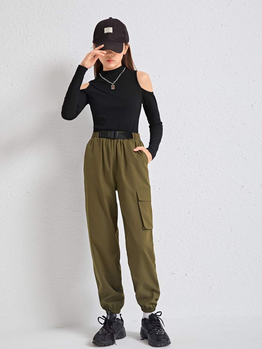 SHEIN Teen Girls Cold Shoulder Top and Cargo Pants Set
