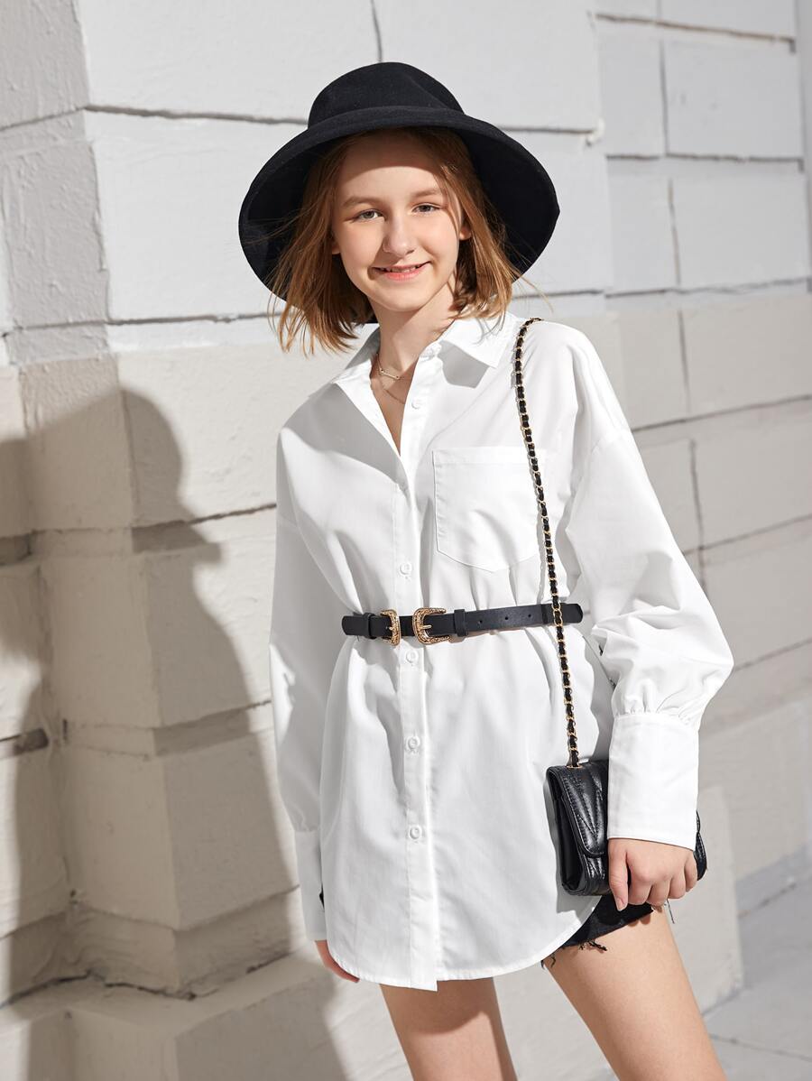 SHEIN Teen Girls Drop Shoulder Curved Hem Blouse Without Belt