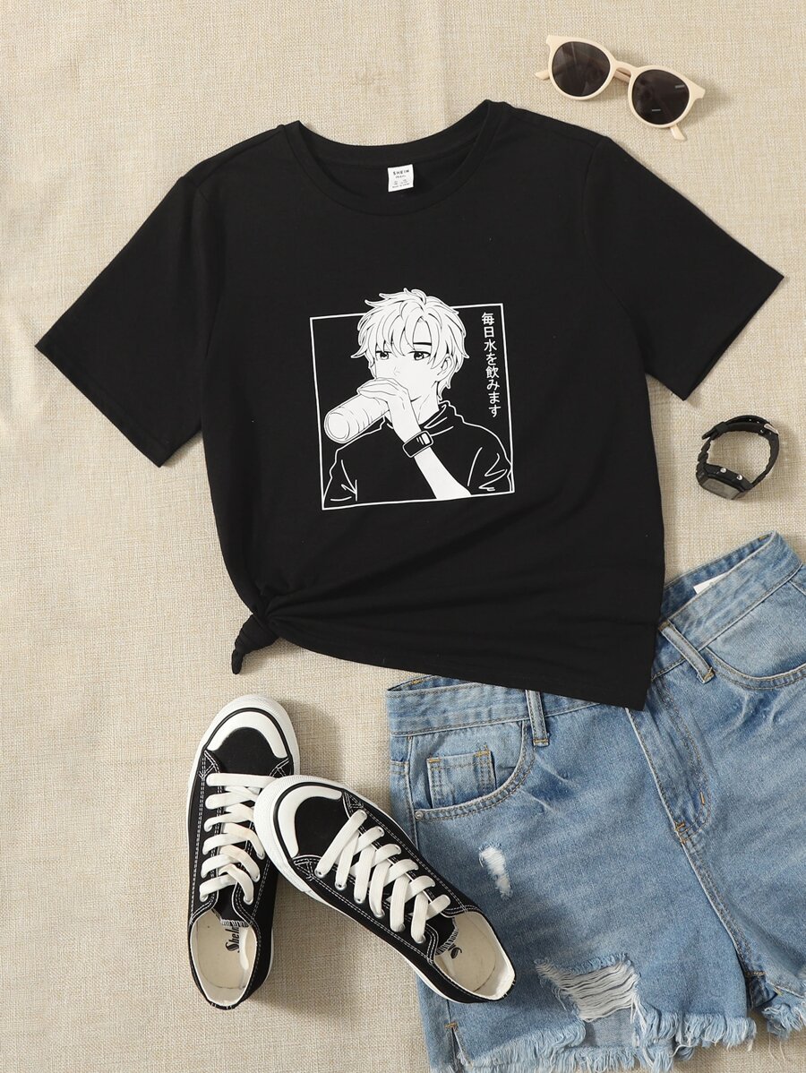 SHEIN Teen Girls Figure Graphic Tee
