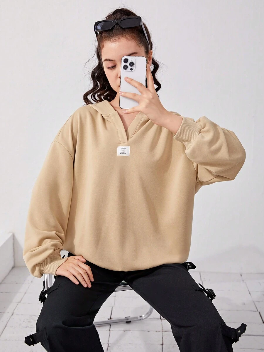 SHEIN Teen Girls Letter Patched Drop Shoulder Hoodie