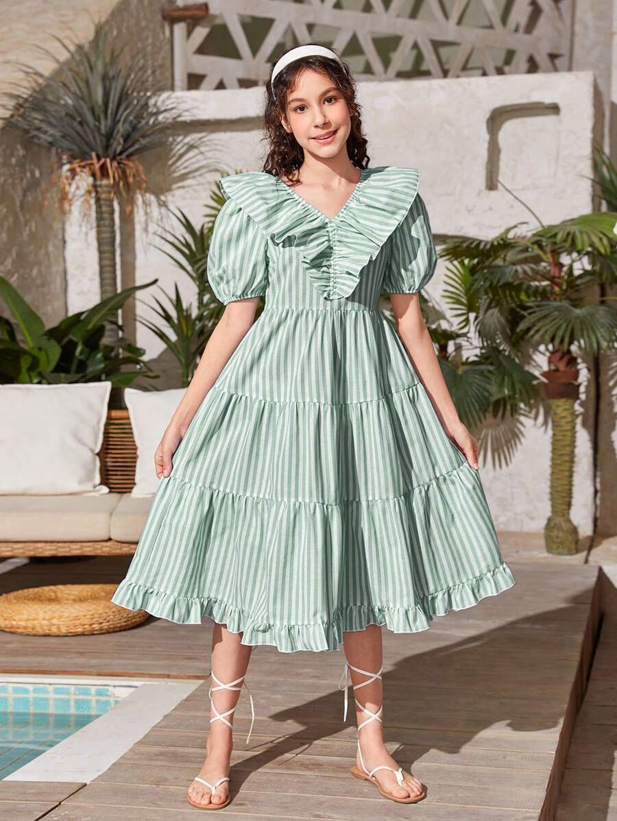 SHEIN Teen Girls Striped Ruffle Hem Dress