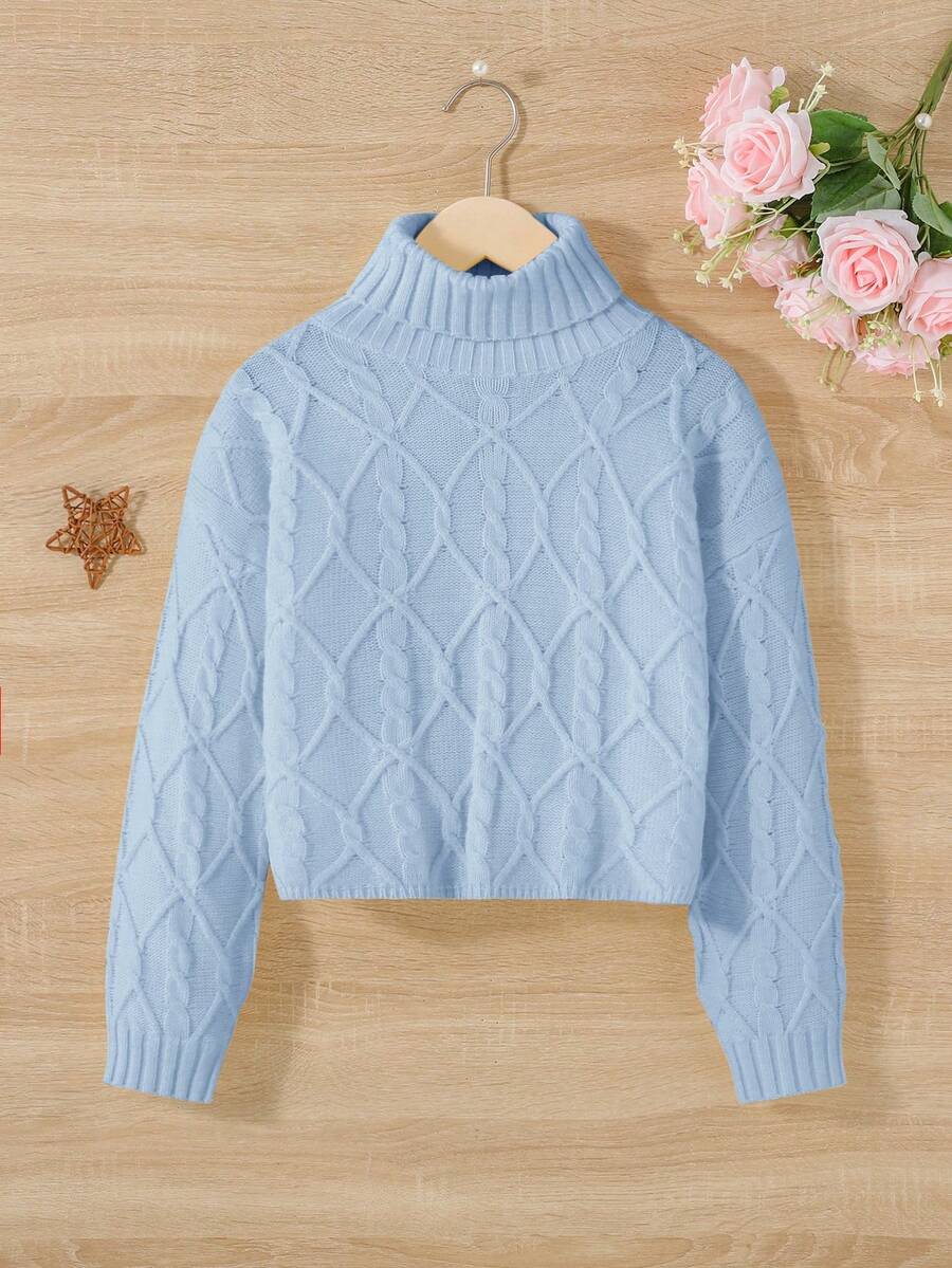 SHEIN Teenage Girls' Casual Loose Fit High Collar Long Sleeve Marled Knit Sweater